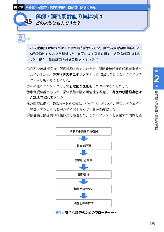 『第2章 中等度/深鎮静・鎮痛の実際 Q45 鎮静・鎮痛前計画の具体例はどのようなものですか?』より抜粋