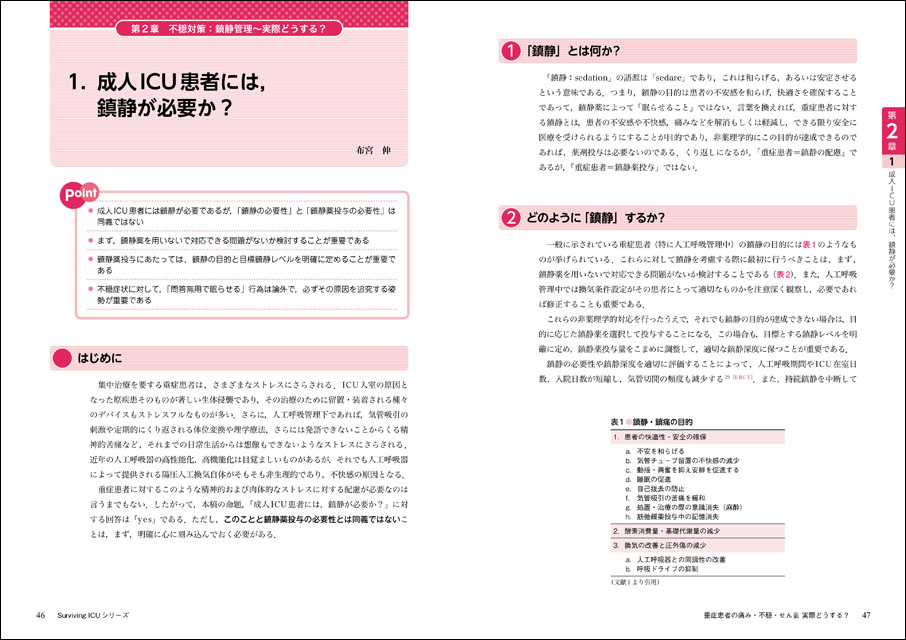 - 【本書名】Surviving ICUシリーズ:重症患者の痛み・不穏・せん妄 実際どうする?〜使えるエビデンスと現場からのアドバイス