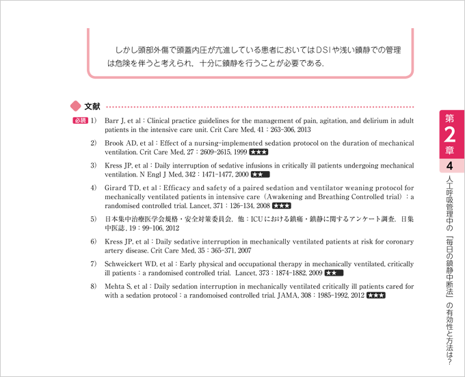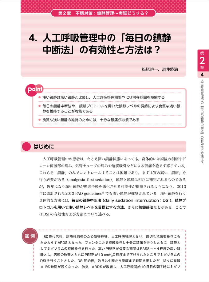 第2章『4. 人工呼吸管理中の「毎日の鎮静中断法」の有効性と方法は?』より抜粋