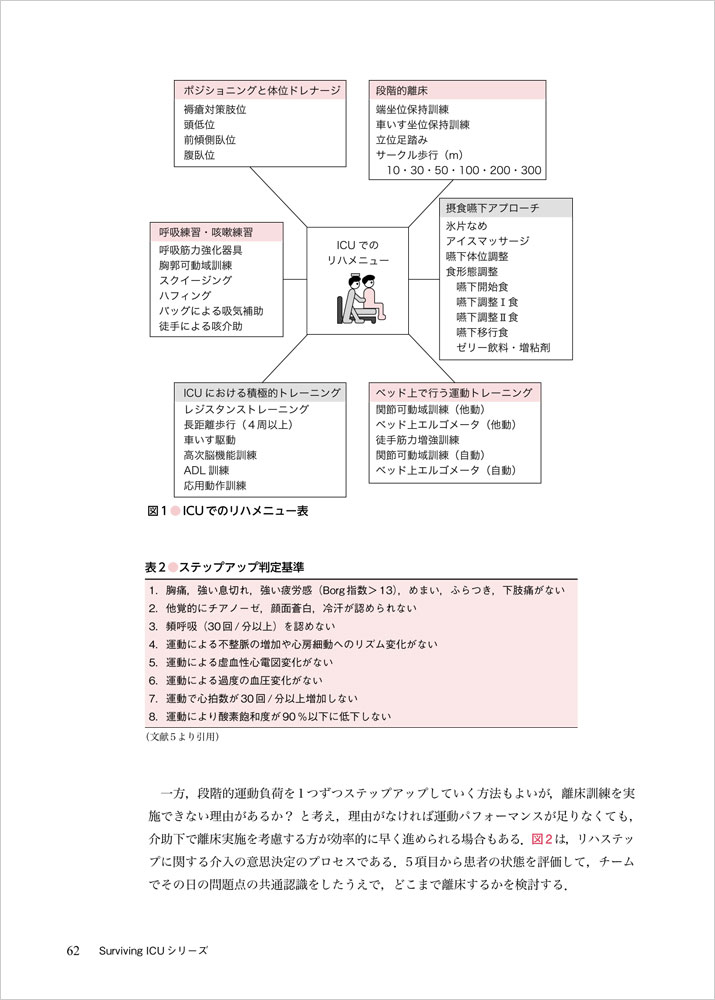 - 【本書名】Surviving ICUシリーズ:ICUから始める早期リハビリテーション〜病態にあわせて安全に進めるための考え方と現場のコツ