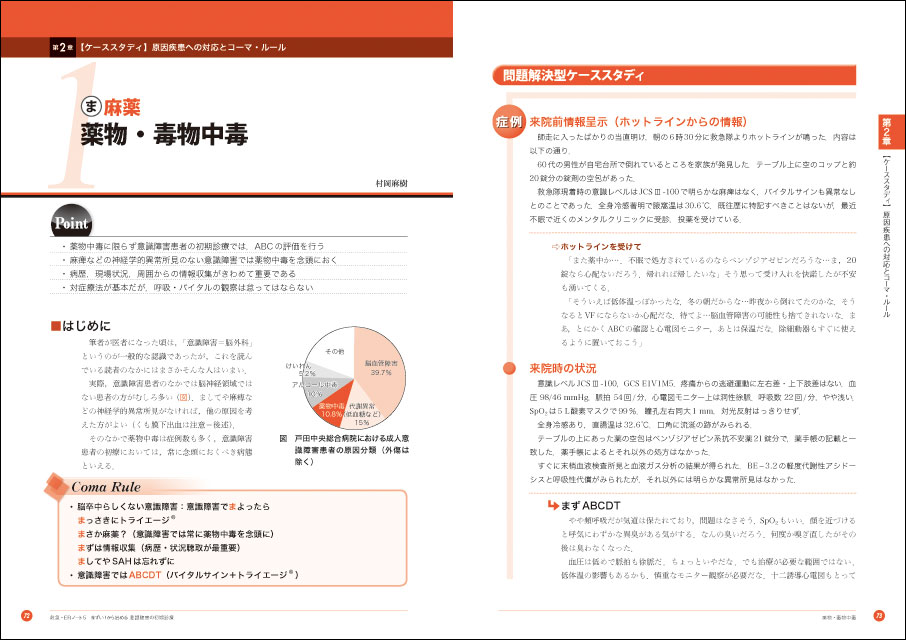 PS,SS,TSの流れに沿った系統的な初期診療をマスター!語呂合わせ「まずい!意識に障害,試して酸素」で鑑別疾患を覚え,現場の機微と経験が詰まったケーススタディとコーマ・ルールで実践力をアップ!