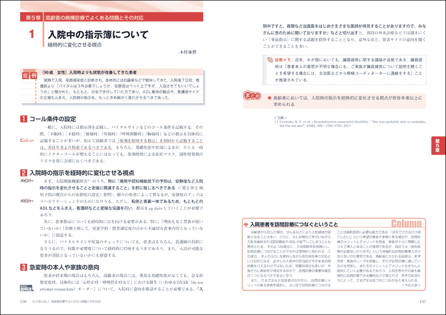 - 【本書名】ジェネラル診療シリーズ:もう困らない!高齢者診療でよく出合う問題とその対応〜検査や治療はどこまで必要?患者・家族に満足してもらうには?外来・病棟・在宅・施設ですぐに役立つ実践ポイント