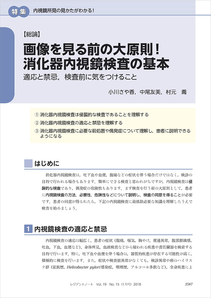 【総論】 画像を見る前の大原則! 消化器内視鏡検査の基本 〜適応と禁忌,検査前に気をつけること【小川さや香,中尾友美,村元 喬】