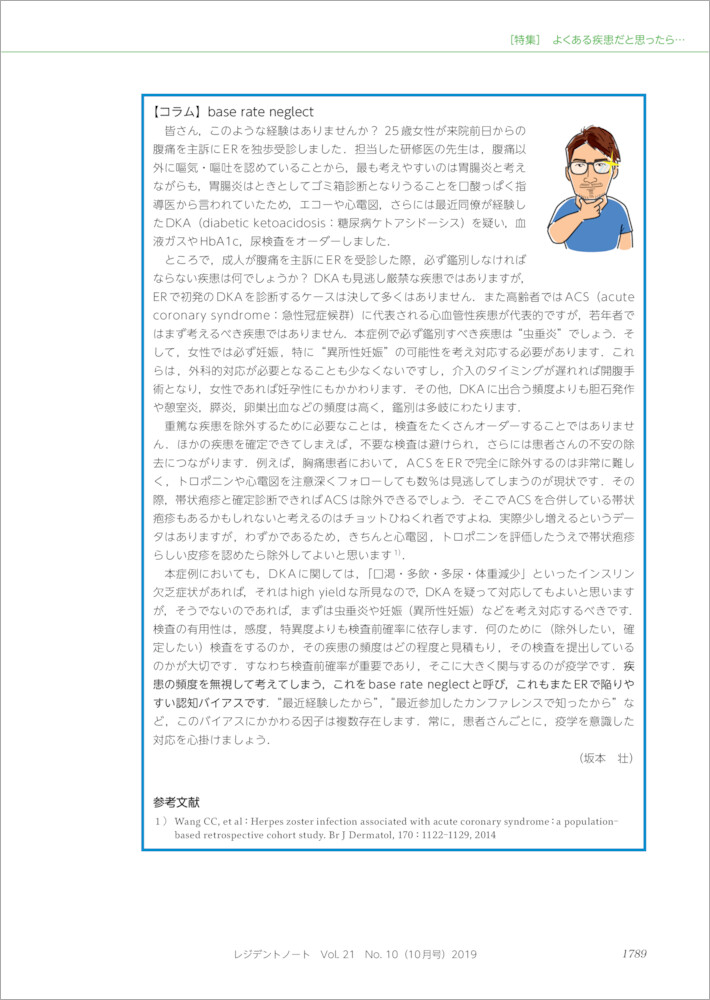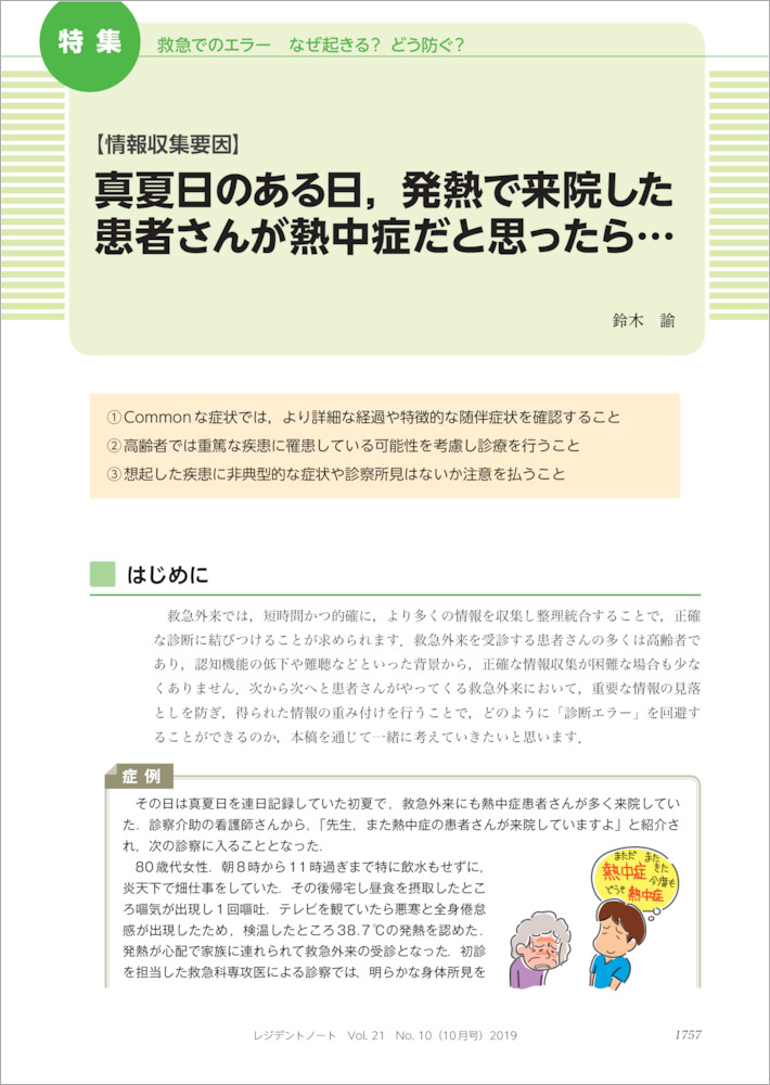 皆さん,救急外来(ER)で見逃しなどのエラーを起こしたことはありますか?「 はい!」と威勢よく返事をすることはなかなかできないでしょうが,必ずといっていいほど,誰もが経験していると思います.もしも,「ありません」と自信をもって言える人がいたとしたら,それは残念ながら自覚していないだけでしょう.実は皆さんが診た翌日に,ほかの病院で異なる診断をつけられているということは,決して珍しくない話です.