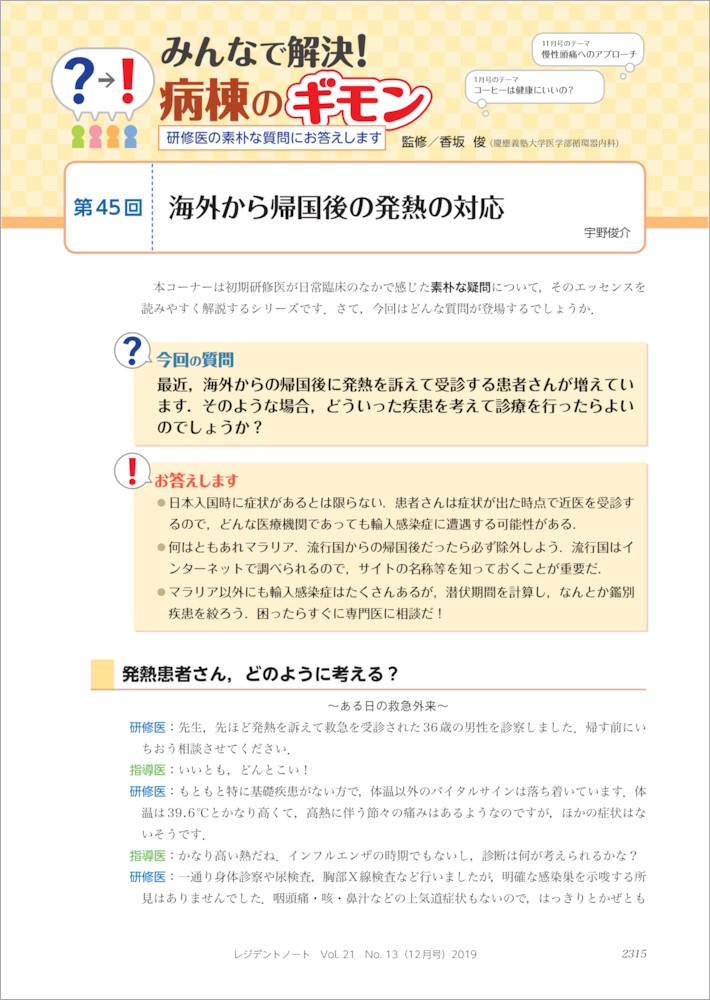 第45回 海外から帰国後の発熱の対応【宇野俊介】