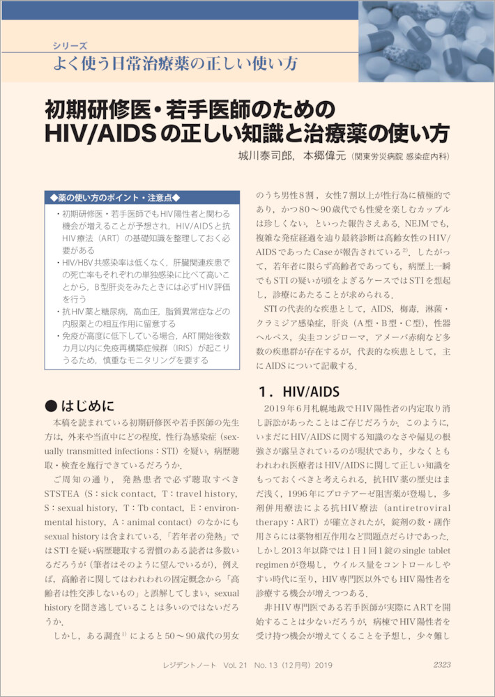 初期研修医・若手医師のためのHIV/AIDSの正しい知識と治療薬の使い方【城川泰司郎,本郷偉元】
