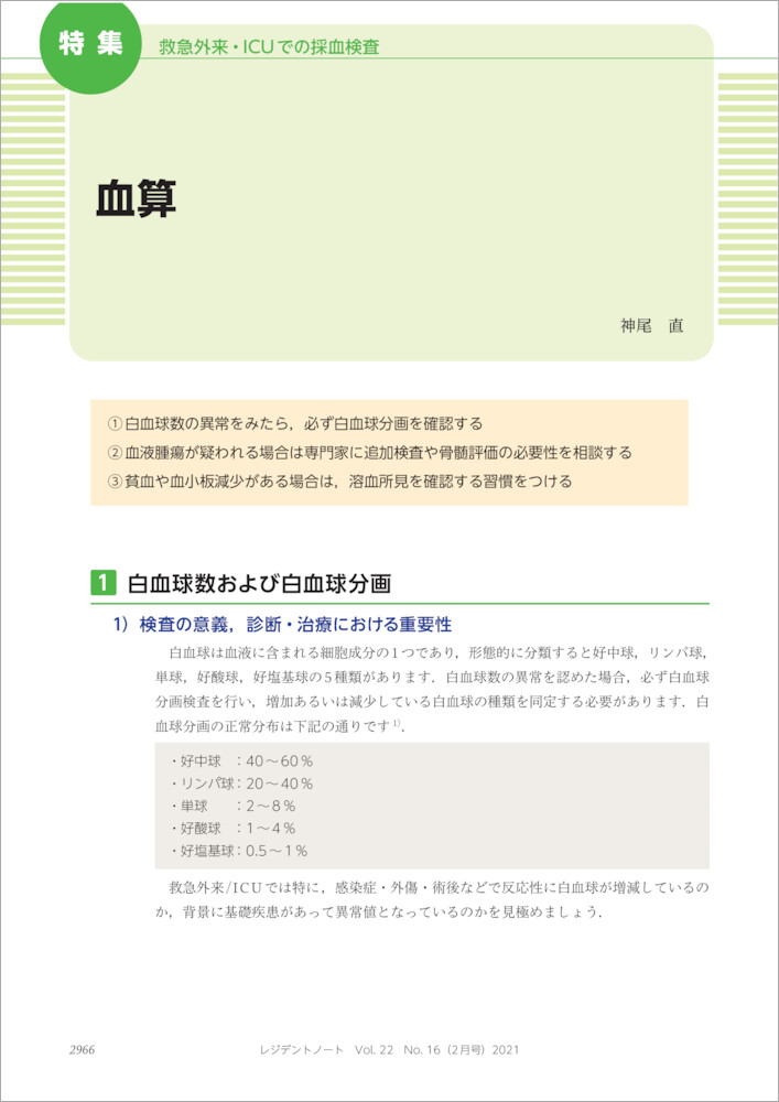 本特集のテーマは,採血検査です.患者さんから血を採取して,検査室に運び,処理して検査機器にかけて,一部は検査技師の評価を加えて結果を得,電子カルテに反映されたら解釈し,診断や評価につなげる…これは研修医が毎日ほぼ必ず関与する業務の1つです.