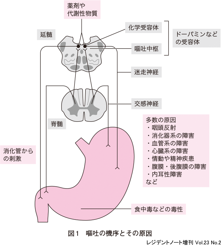 どのようなことかと言いますと,後述するように嘔気・嘔吐の鑑別診断が多岐にわたり多すぎるために,嘔気・嘔吐の症候学と病態を理解することが重要です.病態に沿って嘔気・嘔吐の原因を常に考えることで,暗記する必要はなくなります.