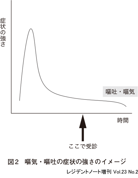 患者に嘔吐の性状と回数,また嘔吐に先行する随伴症状を確認した.