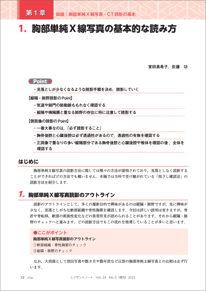本稿では,胸部単純X線写真や胸部CTを読影する際に,初学者が異常所見と認識してしまいがちな病的意義のない変化や正常変異について,症例を提示して解説します.…