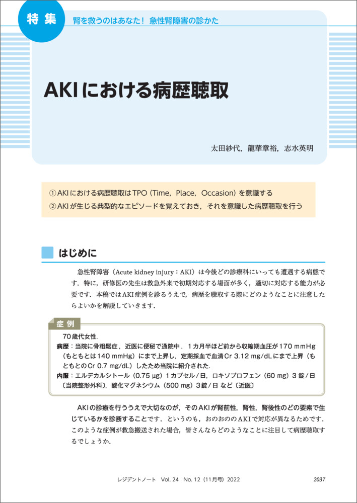 AKIにおける病歴聴取【太田紗代,龍華章裕,志水英明】
