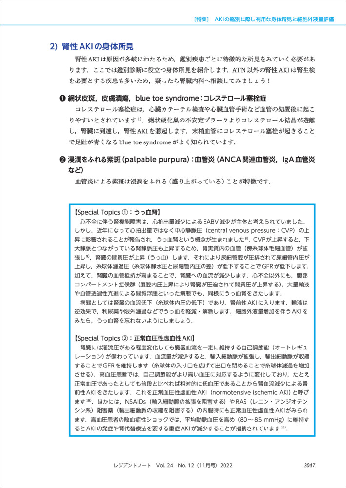 AKIの鑑別に際し有用な身体所見と細胞外液量評価【寺下真帆,冨永直人】