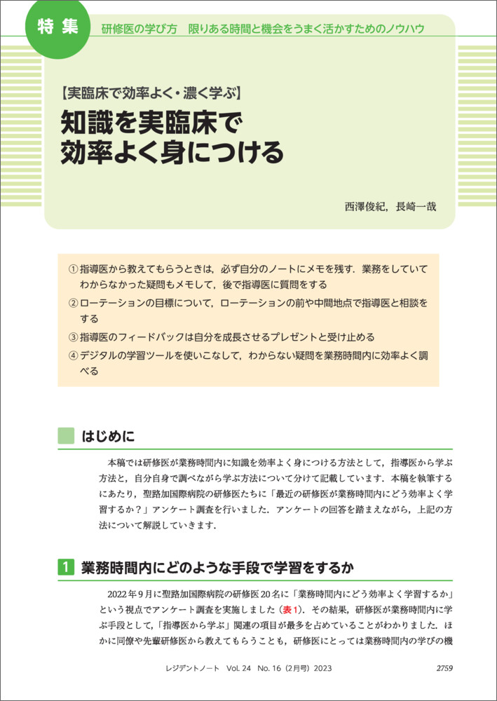知識を実臨床で効率よく身につける【西澤俊紀,長崎一哉】