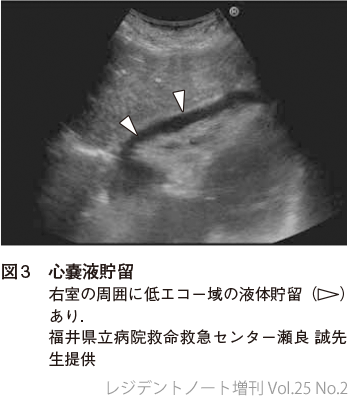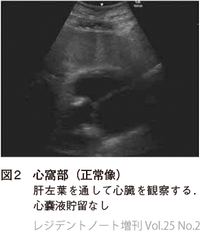 心室壁よりも外側に液体貯留があるかどうか確認する(図2,3).
