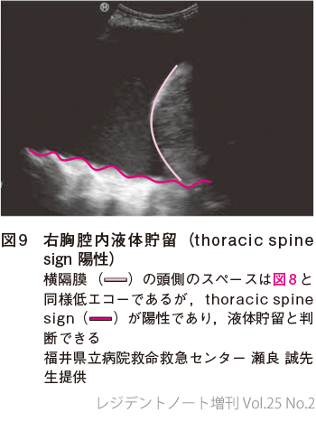 - YDickman E, et al:Extension of the Thoracic Spine Sign:A New Sonographic Marker of Pleural Effusion. J Ultrasound Med, 34:1555-1561, 2015(PMID:26269297)