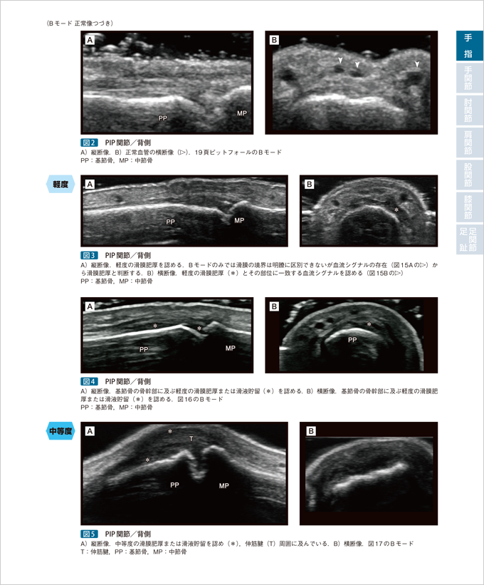 日本リウマチ学会による,異常所見の解釈・評価の標準化を目指したガイドライン.重症度を「正常,軽度,中等度,高度の異常」に分類.観察が推奨される部位ごとに,すべての重症度の画像を収録し,解説しています.