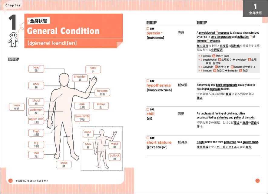 - こんな本,医学生の時に読みたかった!小難しい英単語が無味乾燥で語られる本が多い中,本書は絵が多いのがいい.そして各章の最初にまずoverviewとして解剖図が描いてあり,そこにドバっとまとめて医学英単語が書かれているのは,頭の整理がつきやすくていい.視覚に入ってくるのって大事なんだよね.また「ゾーキーズ」のさし絵がとてもかわいい.え,それ何って?それは本書を読むまでの「お・た・の・し・み!」フッフッ…