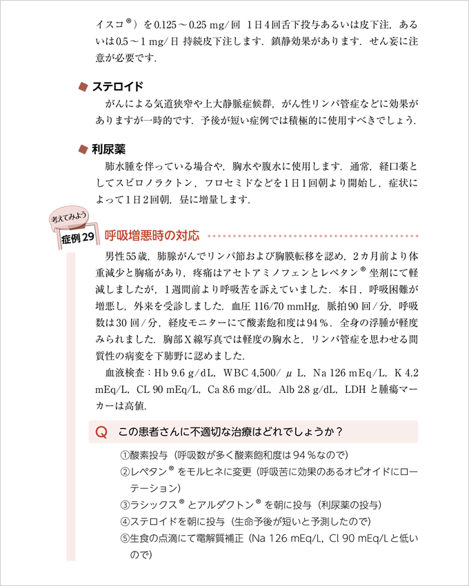 - 【本書名】緩和医療の基本と実践、手とり足とり教えます〜がん患者さんの身体と心の痛みの診かた
