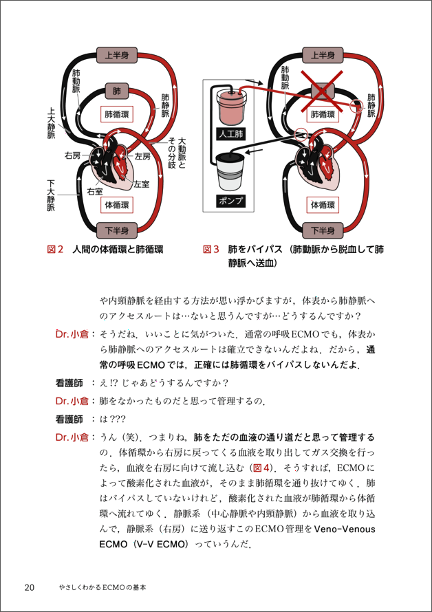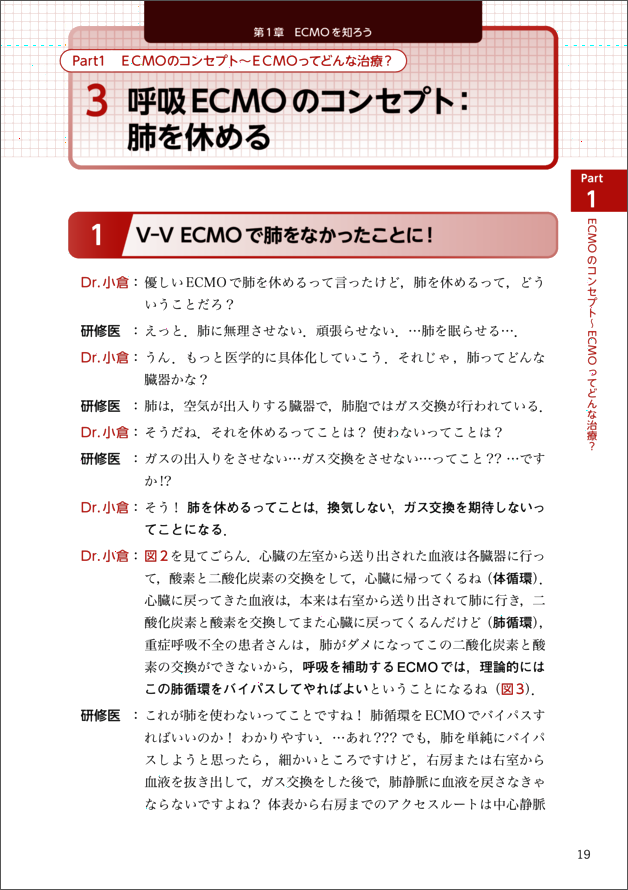 今年は2009年以来の大流行で,インフルエンザによる重症肺炎や劇症型心筋炎患者が全国各地で発生しました.当院でもインフルエンザによる劇症型心筋炎,肺炎でVA-ECMOを回した症例を経験しました.医者15年を超えてくると,それなりにECMOの経験もあるし,学会発表したこともあります…ただし,私の場合はここのところ4年間が大学院生活でもあり,ずっと第一線でバリバリというわけでもありません….そのようなときに,もう一度基本的な呼吸生理から学べて実践的なECMO患者の診療で気をつける点がわかるような…できれば救急のレジデントやICUのナースさんにもわかりやすい本が何かないかな…と探しておりました.できれば昨今のECMO回路の進歩にも対応したupdatedな本はないかな…そのようなときに出合ったのがこの本です.