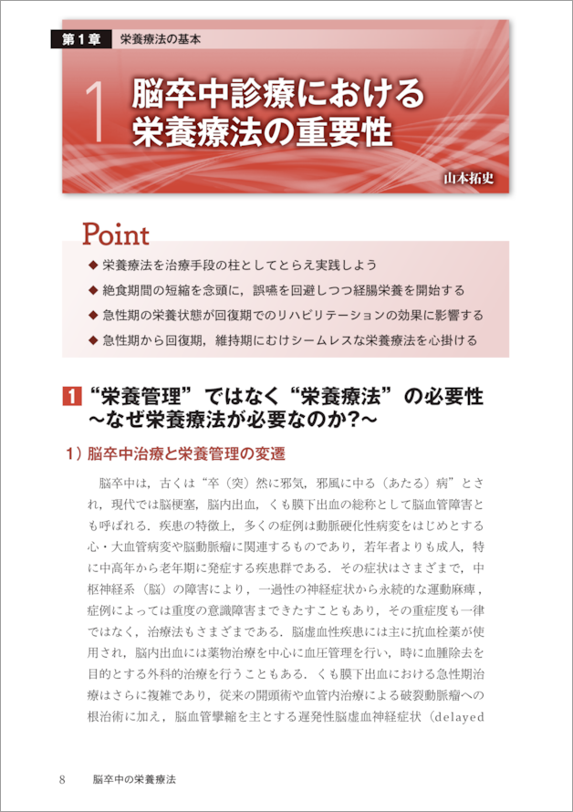 超急性期の栄養管理や製剤選択から回復期・維持期のリハビリテーションまで,脳卒中治療に必要な栄養療法についての解説を1冊に集約.脳卒中治療に関わる医師・メディカルスタッフ必携のこれまでなかった実践書!
