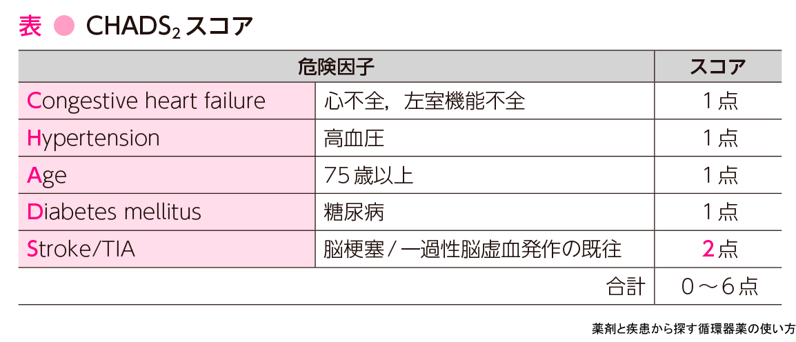 - 脳塞栓症発現の指標であるCHADS2スコアが3点であり,抗凝固療法を開始した