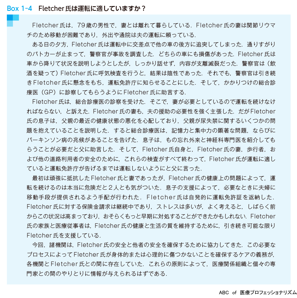 したがって,臨床プロフェッショナリズムには,社会的,倫理的,および法的な側面が存在する.これらの側面は,医療専門家に対する社会の期待,および臨床行為の範囲に関する制約を定義するのに役立つ(Chapter 9参照).私たちは,患者の安全を確保するための積極的な「美徳」として,医療プロフェッショナリズムを推進する(Chapter 7参照).規制の枠組みは,医療専門職の一員になるための必要条件,継続的な診療能力の監視,個人を医療専門家として登録するのが適切ではなくなる状況の特定について規定するためにも必要である(Chapter 11参照).規制の方法は,適切かつ思いやりをもって適用されるとき,患者だけでなく実践家の保護にも役立つことを理解することが重要である.このプロセスは,臨床現場において,ある場面で必要となることを反映している(Box 1-4参照).