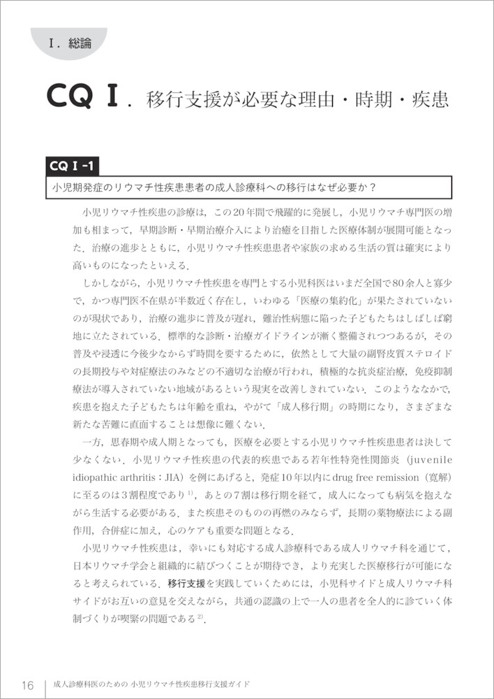 CQⅠ-1 小児期発症のリウマチ性疾患患者の成人診療科への移行はなぜ必要か?