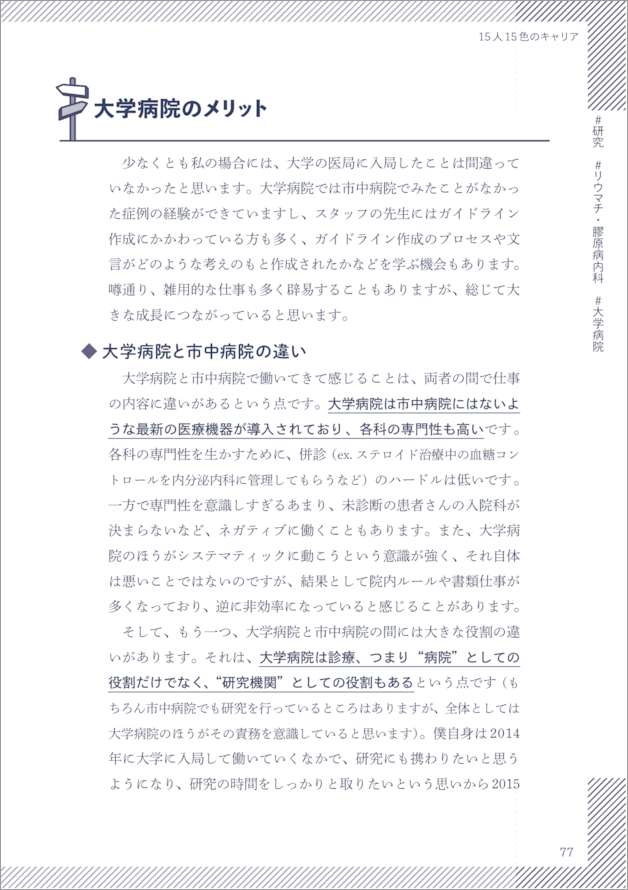 多種多様なキャリアを歩まれている先生方のストーリーを読むことで、医師には多彩な働き方があるのだということを再確認いたしました。…
