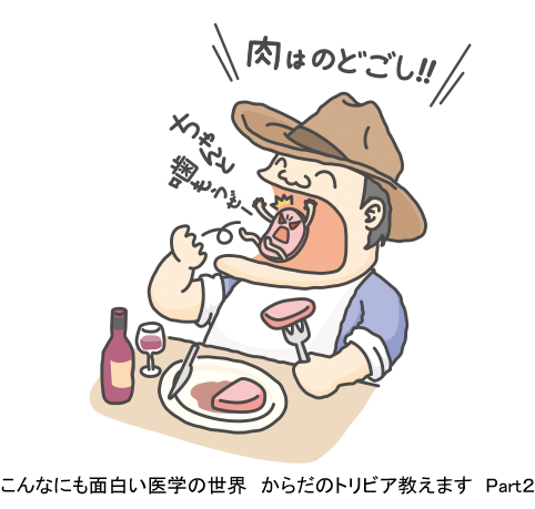 どうしたものかと胸のCTを撮ってみますと,食道内腔に大きな腫瘍のような影が写り,改めて病歴聴取をしたところ,夕食は大好物のステーキで,かなり急いで食べたとのことでした.水を飲んでもらっても改善せず,内視鏡で,えいやっと胃に押し込んだら,嘘のようにすっきりと症状が消えて歩いてお帰りになりました.