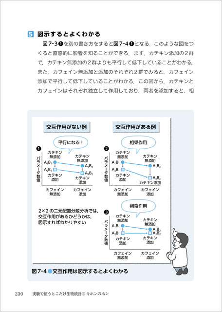 - まずは,ここで二元配置分散分析の意義をしっかり把握して欲しい.二元配置分散分析の結果を受けて,どのように多重比較を行うのかは,7-4で説明する.