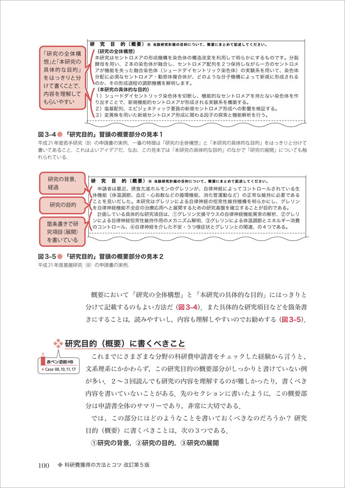 ようするに,全部で5ページのものを書くつもりで,概要では研究目的に比重を置いて,本文では研究計画を重視して書くのはどうだろうか? 概要部分はプレスクリーニングに使われるのだから,まずは研究の意義を審査委員に十分に理解してもらわないといけない.そこで概要部分では研究目的を重視して書く.