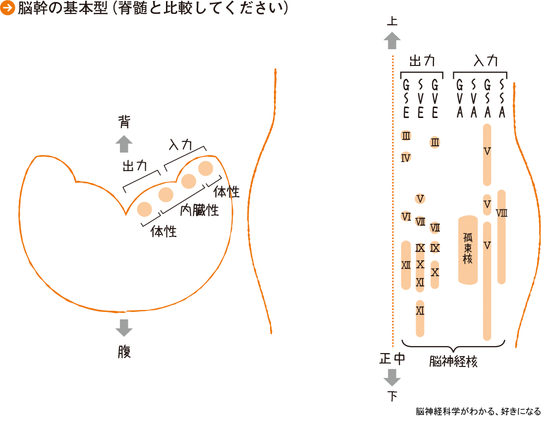 基本ルール4脳幹は脊髄を背側で切って開いた形になっています