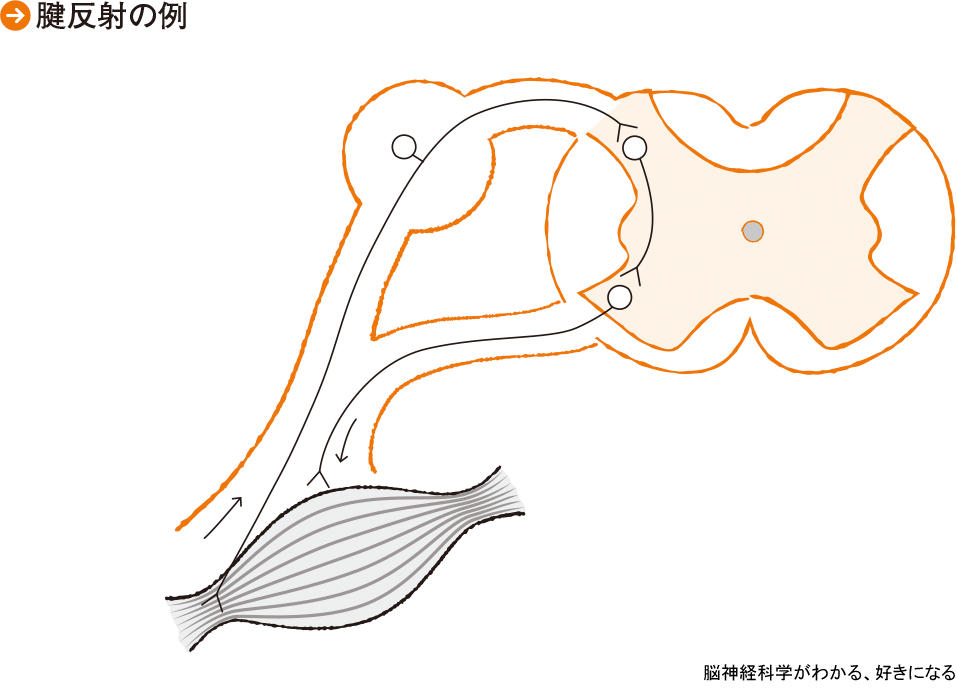 入力が入り、脊髄などを介してダイレクトに出力(体性運動核)につながる形です。入力に対して、最適な運動を選んで(=情報処理)、出力する、単純な過程です。