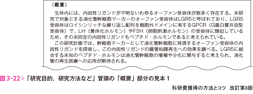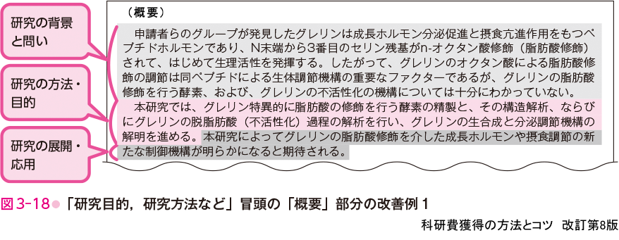 この例について,少し文章を整理して研究の展開を加えると,まとまった概要ができあがる(図3-18).