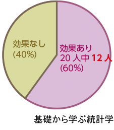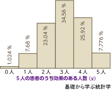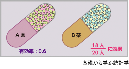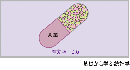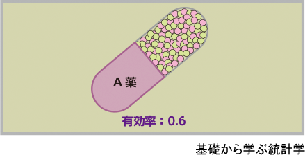 有効率は、患者が服用して効果がある確率です。つまり「有効率が0.6」は、無数の患者がA薬を服用した場合に「60%の患者に効果があり、40%の患者に効果がない」を意味します。