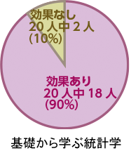そこで臨床試験を行います。 20人の患者の協力を得たとします。B薬を服用してもらい、効果の有無を観察します。「B薬はA薬よりも有効なのか?」これが知りたい疑問です。