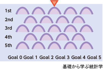 本書では、二項分布の説明に、スキーを例に使いました。理由は「計算の細部を視覚的に表現できる」です。ただし、一部の学生は、スキーを例にした説明に違和感を感じます。「ゴールにはA, B, C, D, E, Fのように記号を割り当てるのが普通なのに、わざわざ数値を割り当てて、その上で、その数値に数字としての意味を持たせることに違和感を感じる」という指摘を、毎年、数名の学生から受けます。それから、「ゴールの番号を、1からでなく、0から始める理由が分からない」という指摘もあります。