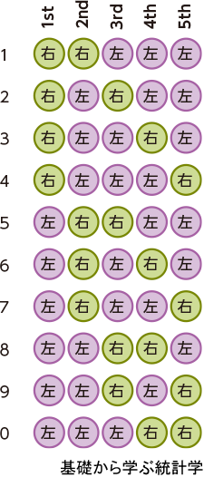 二項分布を理解するには、まず、二項係数(binomial coefficient)の復習が必要です。二項係数は、第2章のWMW検定でも、欠かせない予備知識となります。