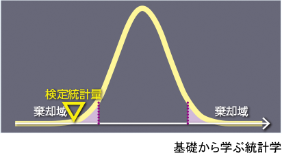 統計学では、検定統計量が棄却域に入ったとき、後者の立場をとります。そこで、帰無仮説H0「比べるもの同士は等しい」を棄却(reject)します。そして「おそらく、対立仮説HA『比べるもの同士は異なる』の方が適切であろう」と判断します。