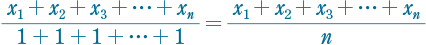 となって、単純な算術平均となります。次に、重みの係数を、確率piにしてみます。加重平均は