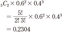 0.6 × 0.6 × 0.4 × 0.4 × 0.4 = 0.02304