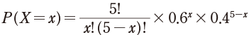 P(X−x) − 20Cx × 0.6x × 0.420−x