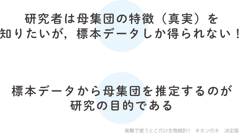 標本で研究し(データをとって),母集団の特徴を推定する! これが研究者が行う研究である.