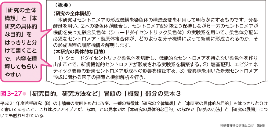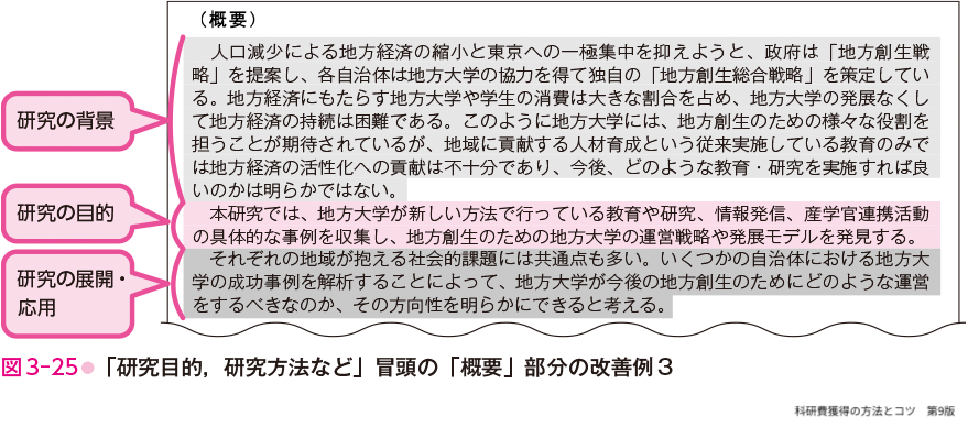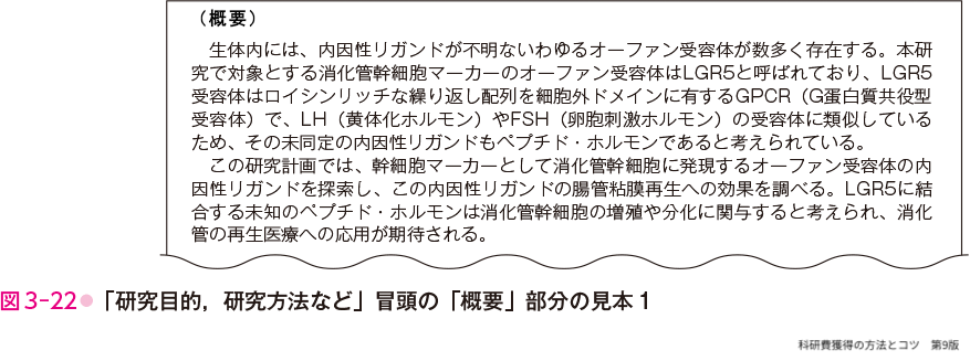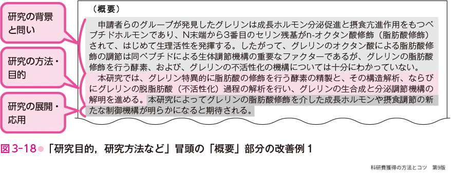 この例について,少し文章を整理して研究の展開・応用を加えると,まとまった概要ができあがる(図3-18).