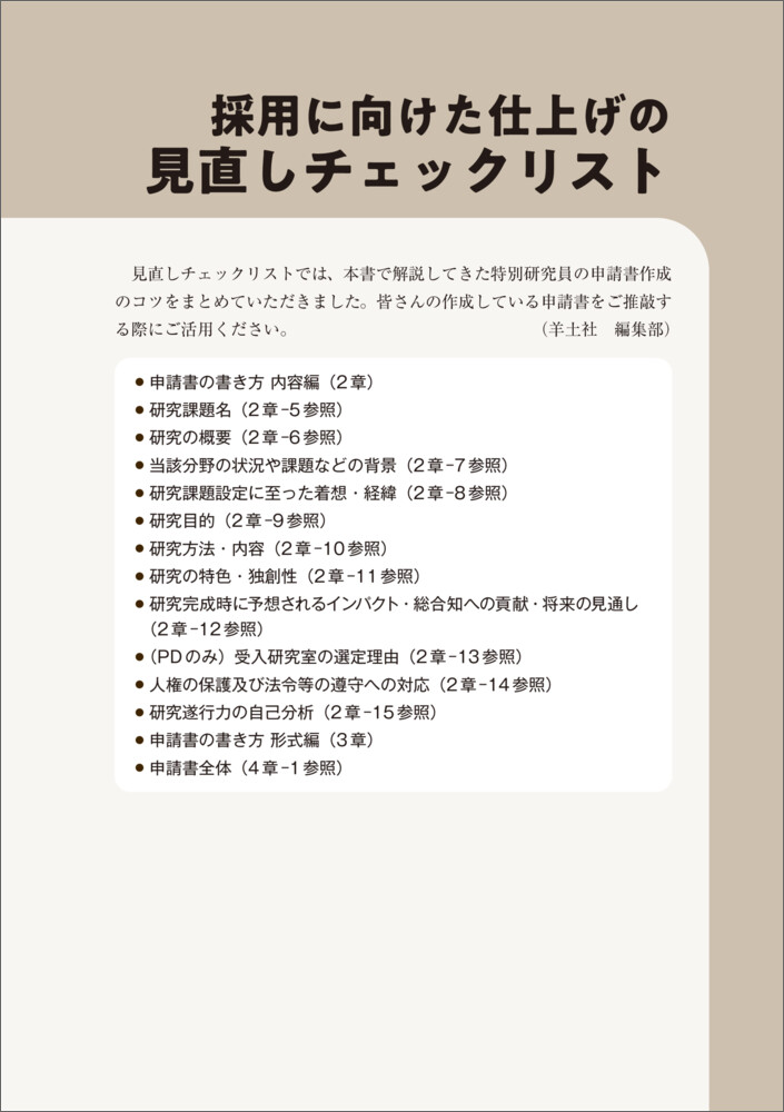 - 【本書名】学振特別研究員に採用される方法とコツ〜「質の高い申請書」と応募戦略でキャリアを切り拓く!