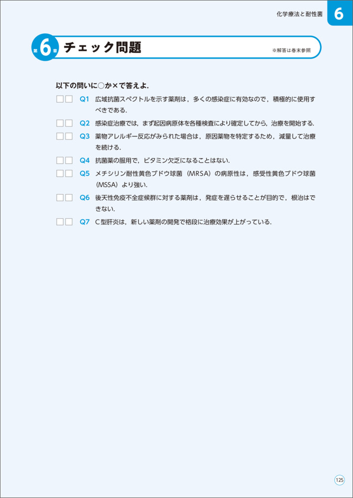 1 作用機序/2 抗菌薬の作用点/3 抗菌スペクトルと薬剤感受性/4 抗菌薬による感染症の治療/5 抗菌薬の副作用・相互作用/6 薬剤耐性(AMR)とその対策/7 代表的薬剤耐性菌