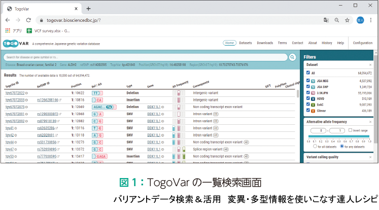 (1)日本人集団におけるバリアントの頻度情報を調べる −− TogoVar①