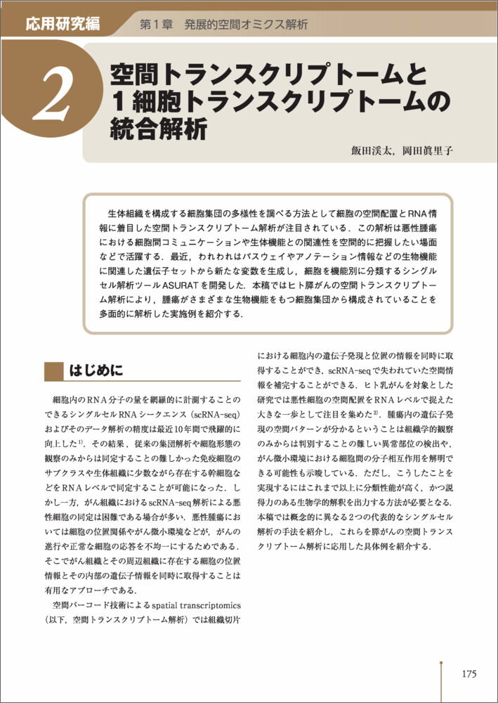 - 【本書名】実験医学別冊 最強のステップUPシリーズ:空間オミクス解析スタートアップ実践ガイド〜最新機器の特徴と目的に合った選び方、データ解析と応用例を学び、シングルセル解析の一歩その先へ!