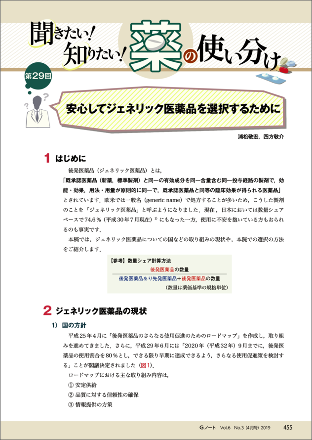 第29回 安心してジェネリック医薬品を選択するために【浦松敬宏,四方敬介】