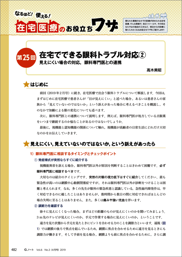 第25回 在宅でできる眼科トラブル対応② 見えにくい場合の対応,眼科専門医との連携